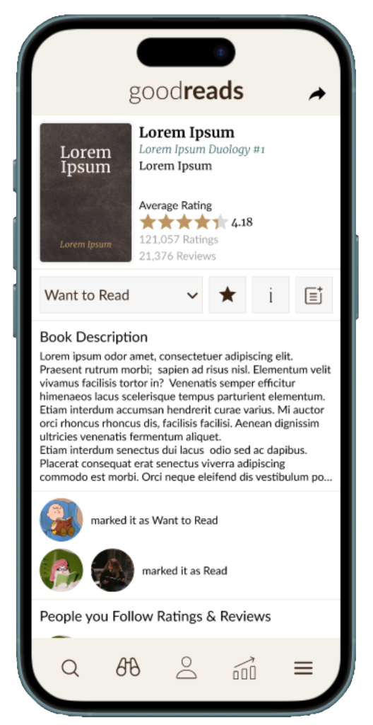 The redesigned interfaces streamlines navigation by minimizing the number of steps for a user to access key features. It unifies mobile and desktop experiences, ensuring consistency across platforms. New personalized reading statistics provide users with deeper insight into their reading habits and the new user-friendly design encourages interaction and engagement within the community.